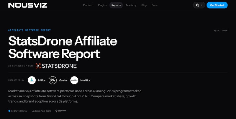 The report is authored by Darrell Helyar and produced in partnership with StatsDrone and NousViz, with support from Affilka, iGsuite, and Intelitics.