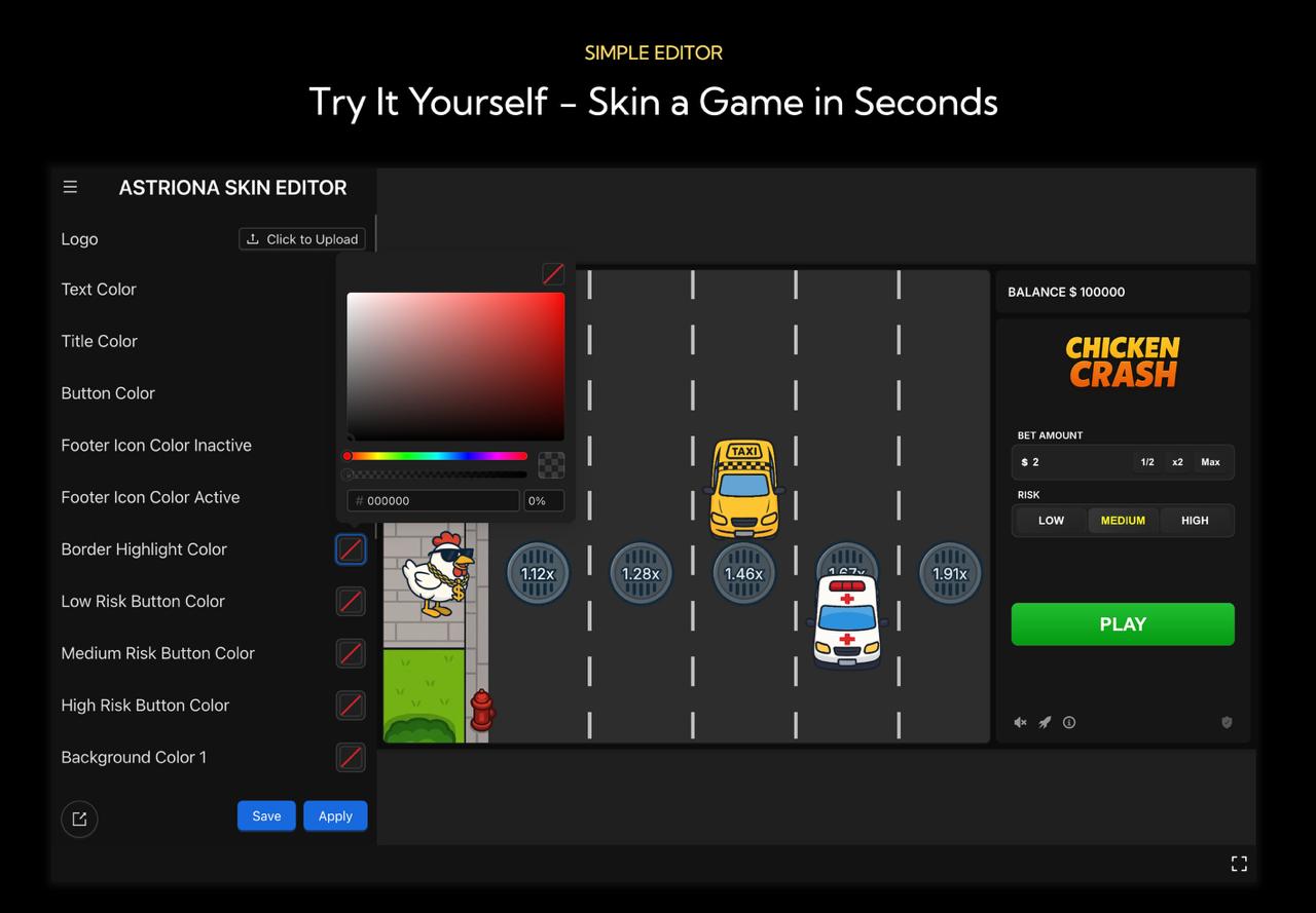 Astriona, an iGaming game provider specializing in crash games, mini games, and slots, has introduced a Skinning Editor designed to help casino platforms create customized versions of games aligned with their brand identity.